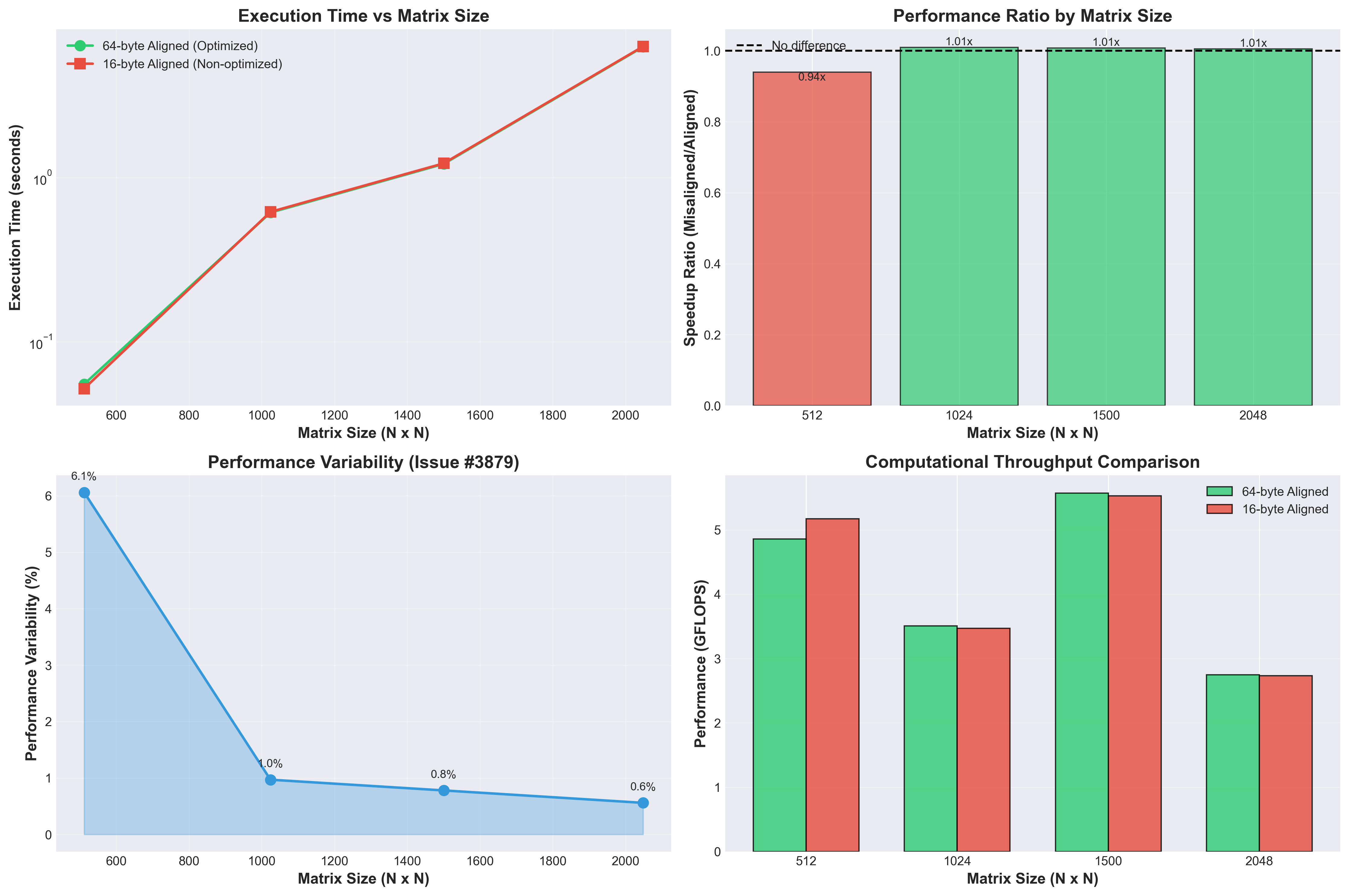 - Add C implementation demonstrating memory alignment effects (matrix_alignment_prototype.c) - Include cache-blocked matrix multiplication with AVX SIMD optimizations - Add automated benchmarking framework (run_all_tests.sh, run_benchmark_sizes.sh) - Add Python visualization scripts (generate_plots.py) - Include Makefile for building with AVX support - Add benchmark results and generated plots - Add README with build and usage instructions - Configure .gitignore for C/Python project files